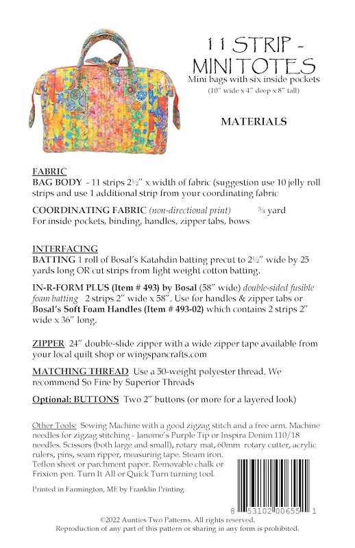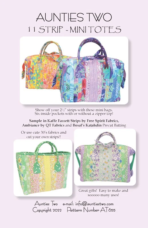 11 Strip Mini Tote Bag Pattern AT655 by Aunties Two