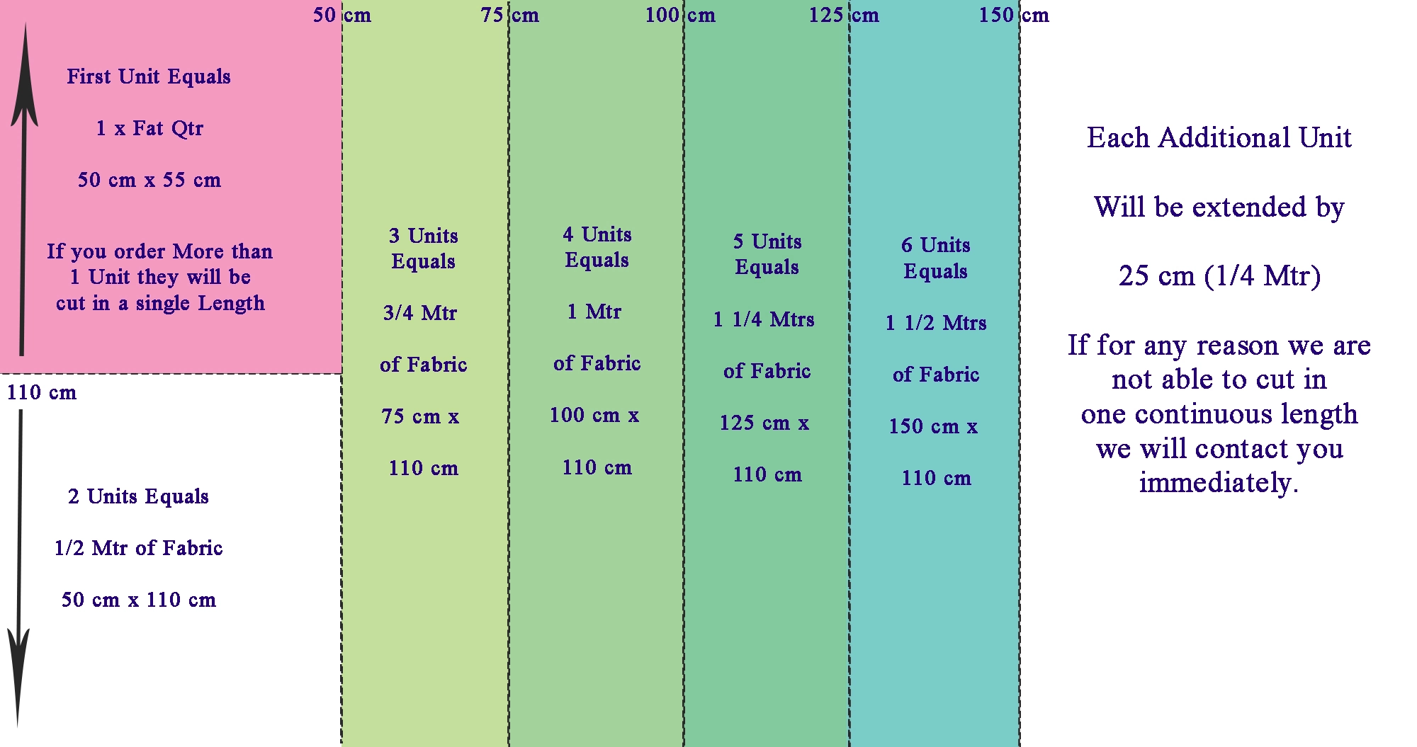 Each unit of fabric is 1/4 Meter