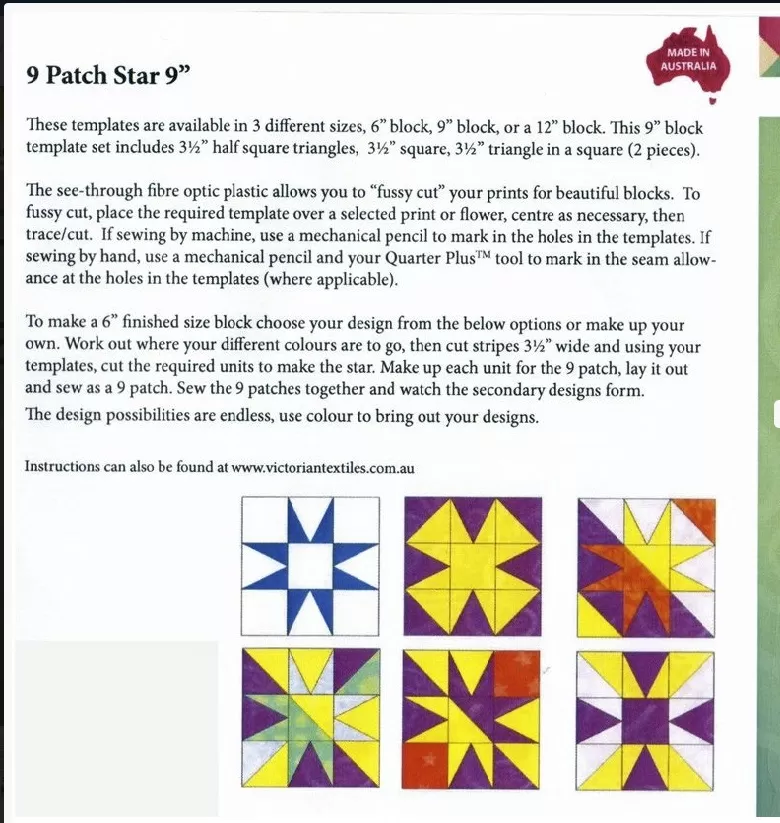 The see-through fibre optic plastic allows you to "fussy cut" your prints for beautiful blocks. The instructions include some wonderful ideas for block designs, but the possibilities are endless, have some fun and create your own.