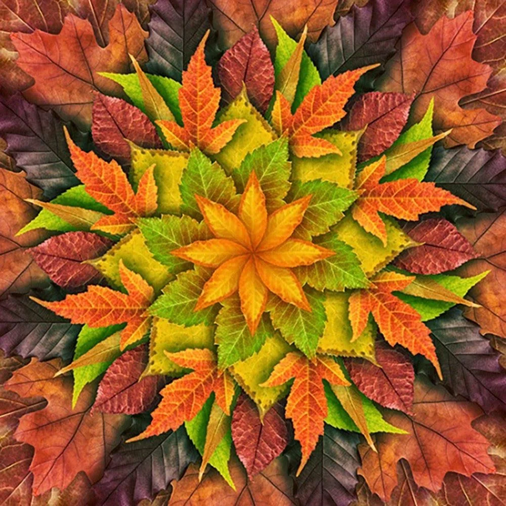 Autumn Dream Big Leaf Hoffman Quilt Panel 43 x 43 Inches Digital Print
