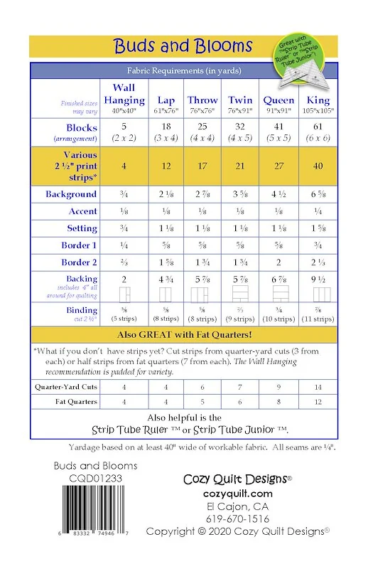 Save! Purchase your Strip Tube Ruler™ / s with your Cozy Quilt Design pattern. A $2 discount on each ruler automatically given at checkout
