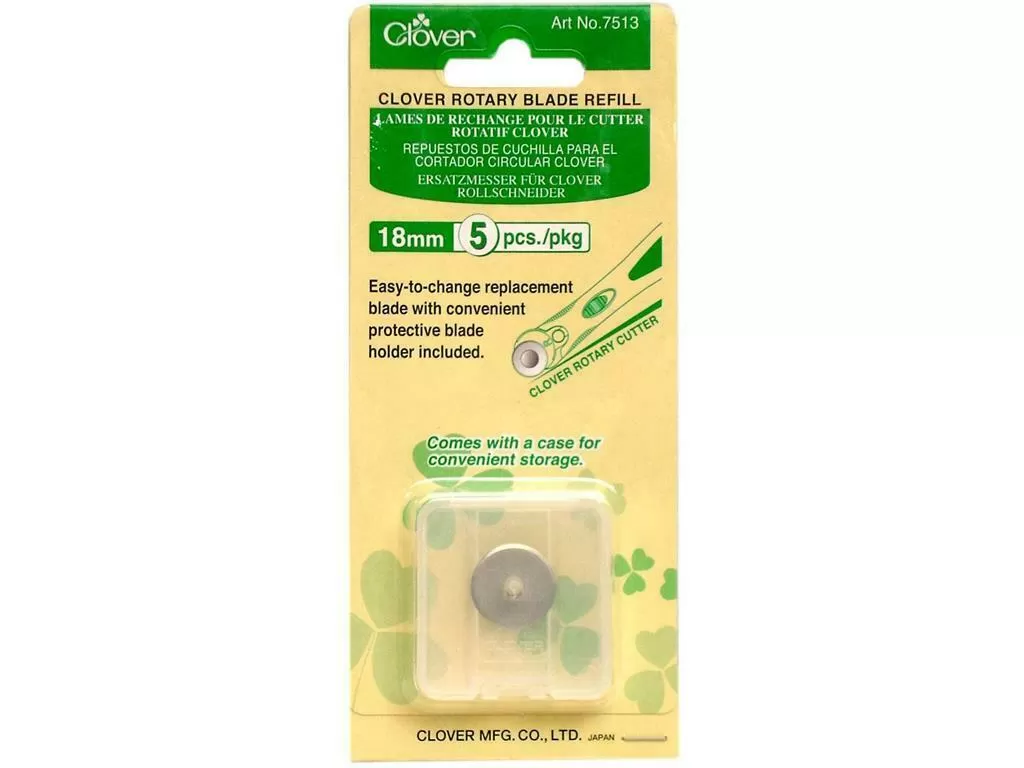 Clover 18mm Rotary Cutter Replacement Blades x 5 with protective blade case