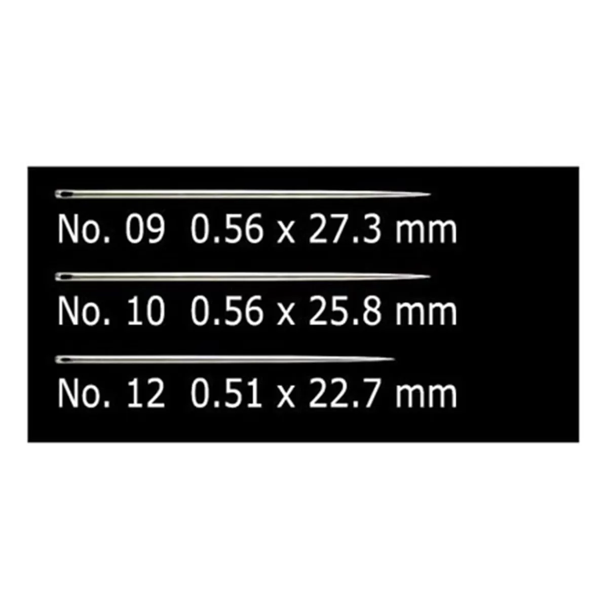 These needles have a gold-eye plating with a unique elliptical design for easy threading. The needle's hardness was obtained through high temperature treatment, making the needles hard to break or bend. With nickel plating and a sharp point, these needles glide through fabrics smoothly.