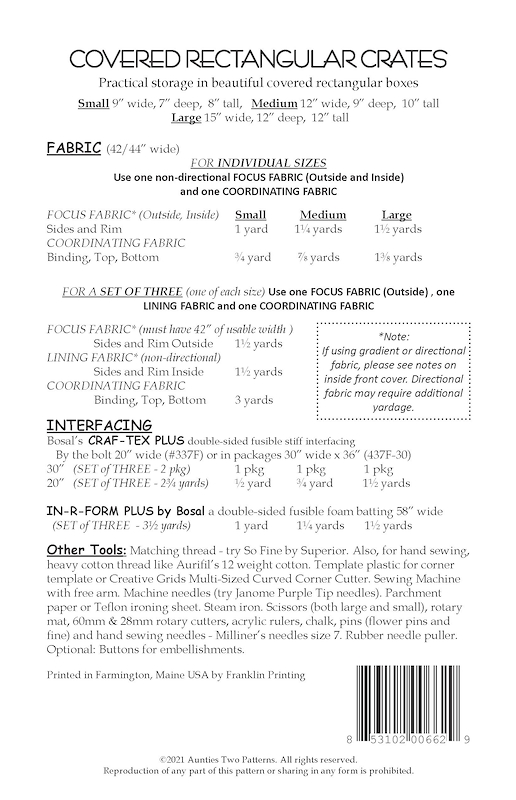 Covered Rectangular Crates Bag Pattern by Aunties Two AT662