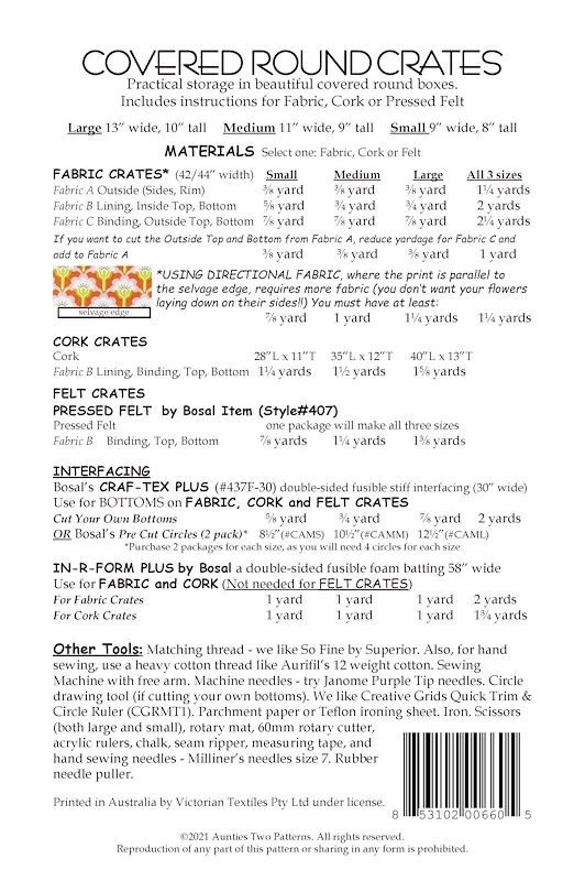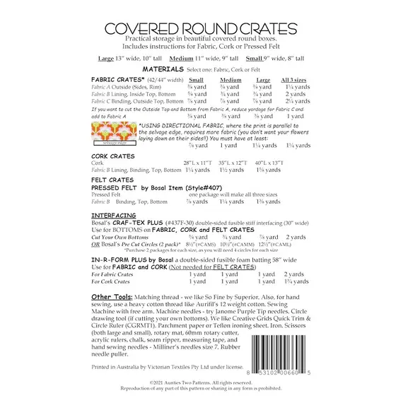 Covered Round Crates Bag Pattern by Aunties Two AT 660