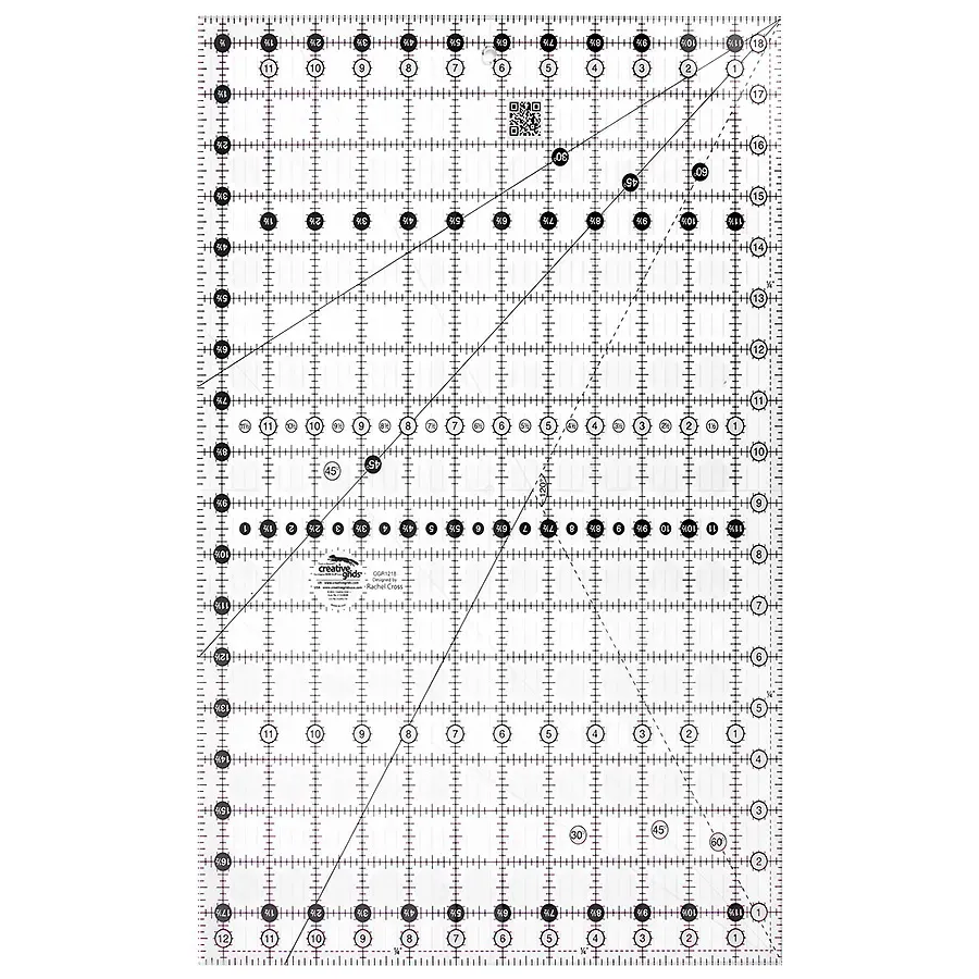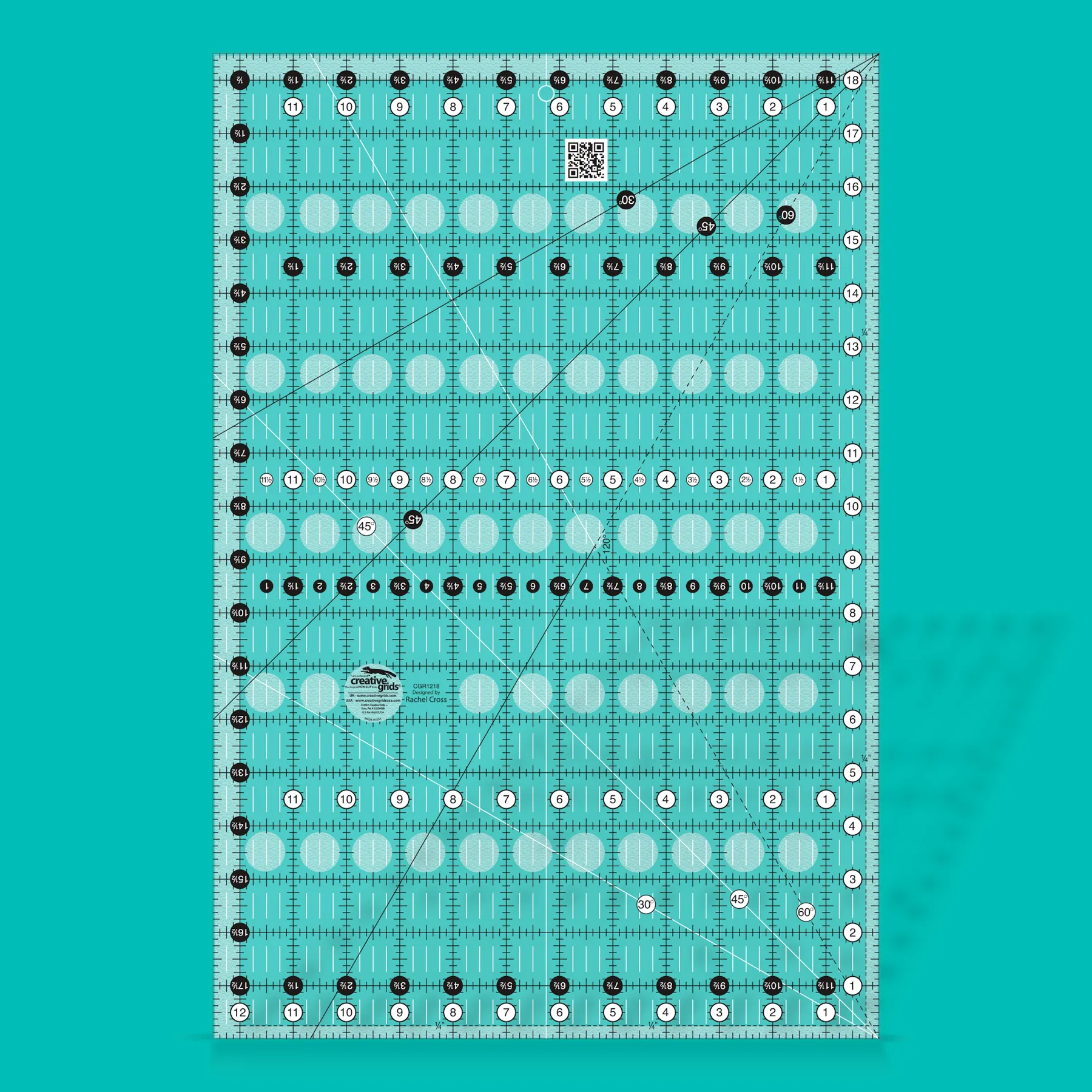 This 12-1/2 x 18-1/2-inch rectangle ruler is the junior version of CGR1224 which is the largest rectangle on the market. This ruler is the perfect choice for those quilters working in smaller spaces but still like to do Home Dec projects, trim quilts, mark cross-hatching, and cut borders up to 12-1/2 inches wide.