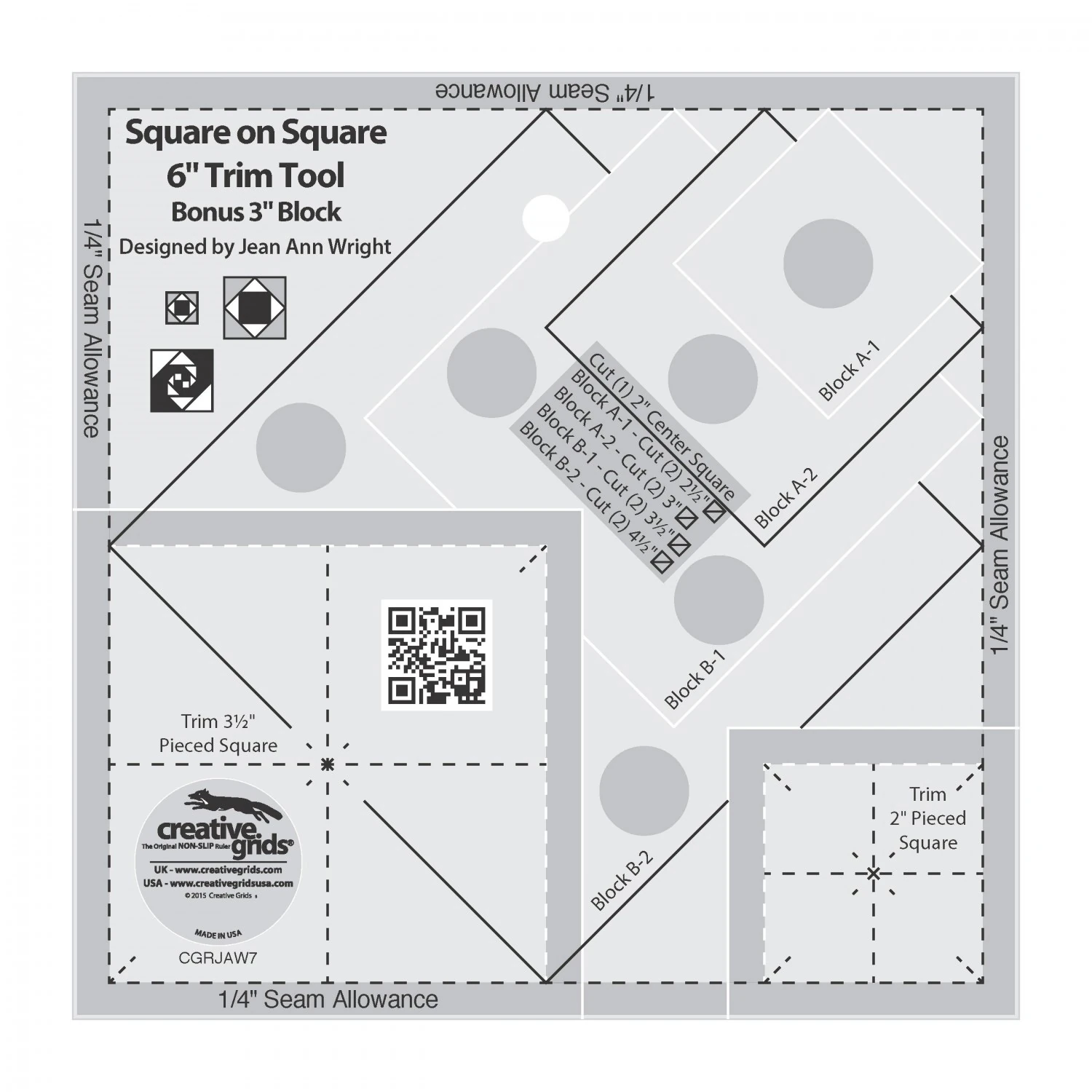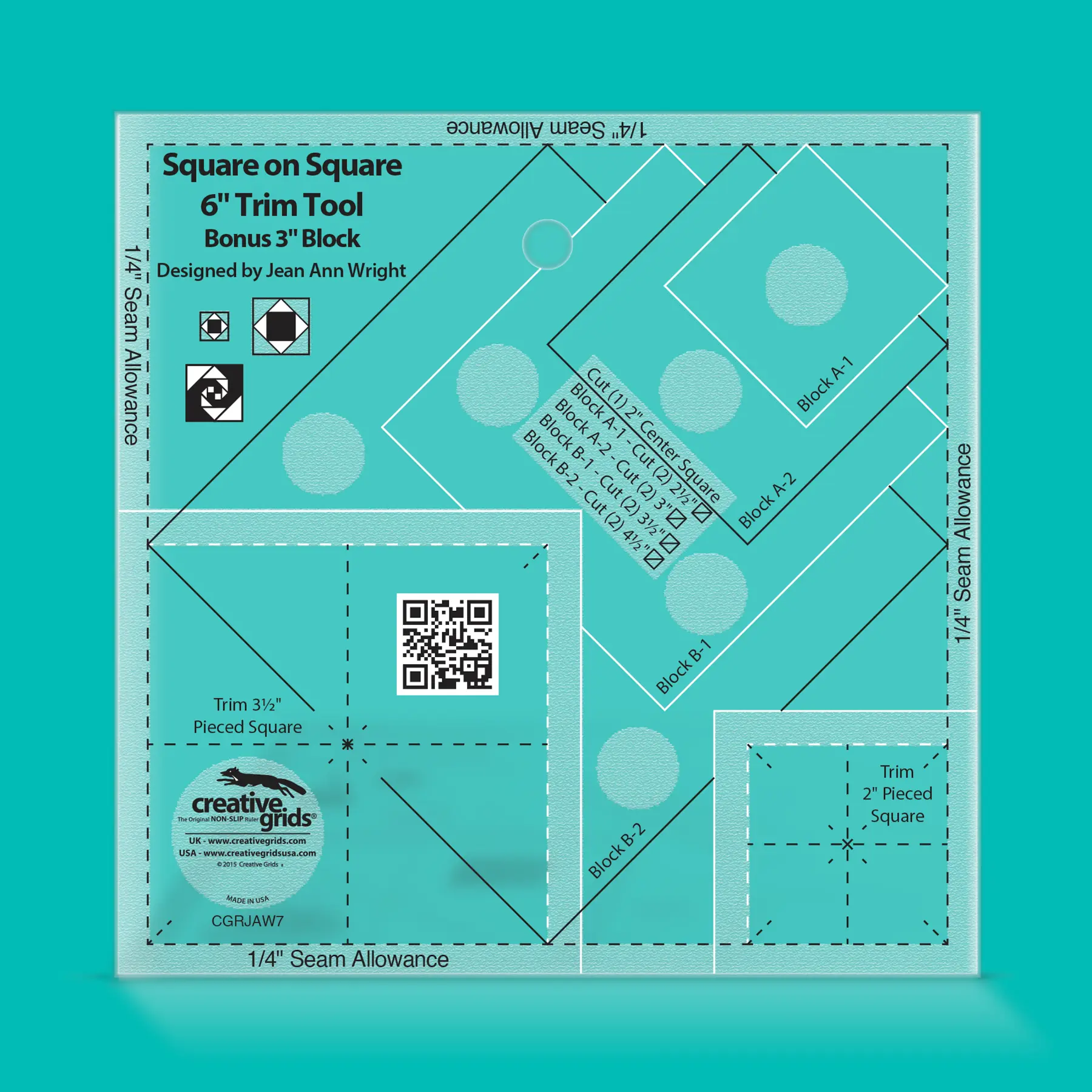 Creative Grids Square on Square Trim Tool Ruler - 3 inch and 6 inch CGRJAW7