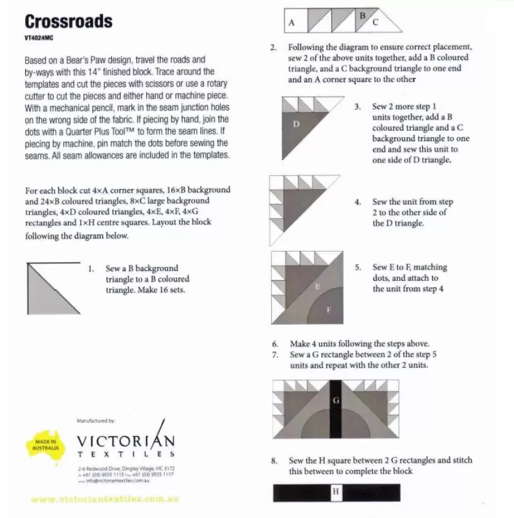 12" Finished Block Size, 7 Template Pieces and Instructions