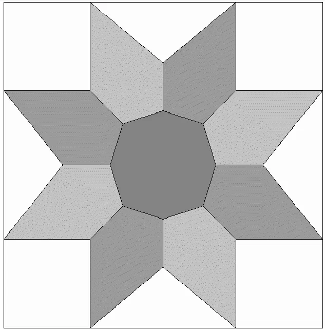This pretty block is a re-make of a 1930’s pattern, with petals stitched to an octagon and squared up with triangles and squares.
