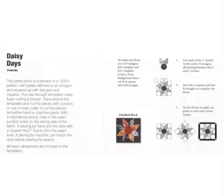 6" Finished Block Size, 4 Template Pieces and Instructions