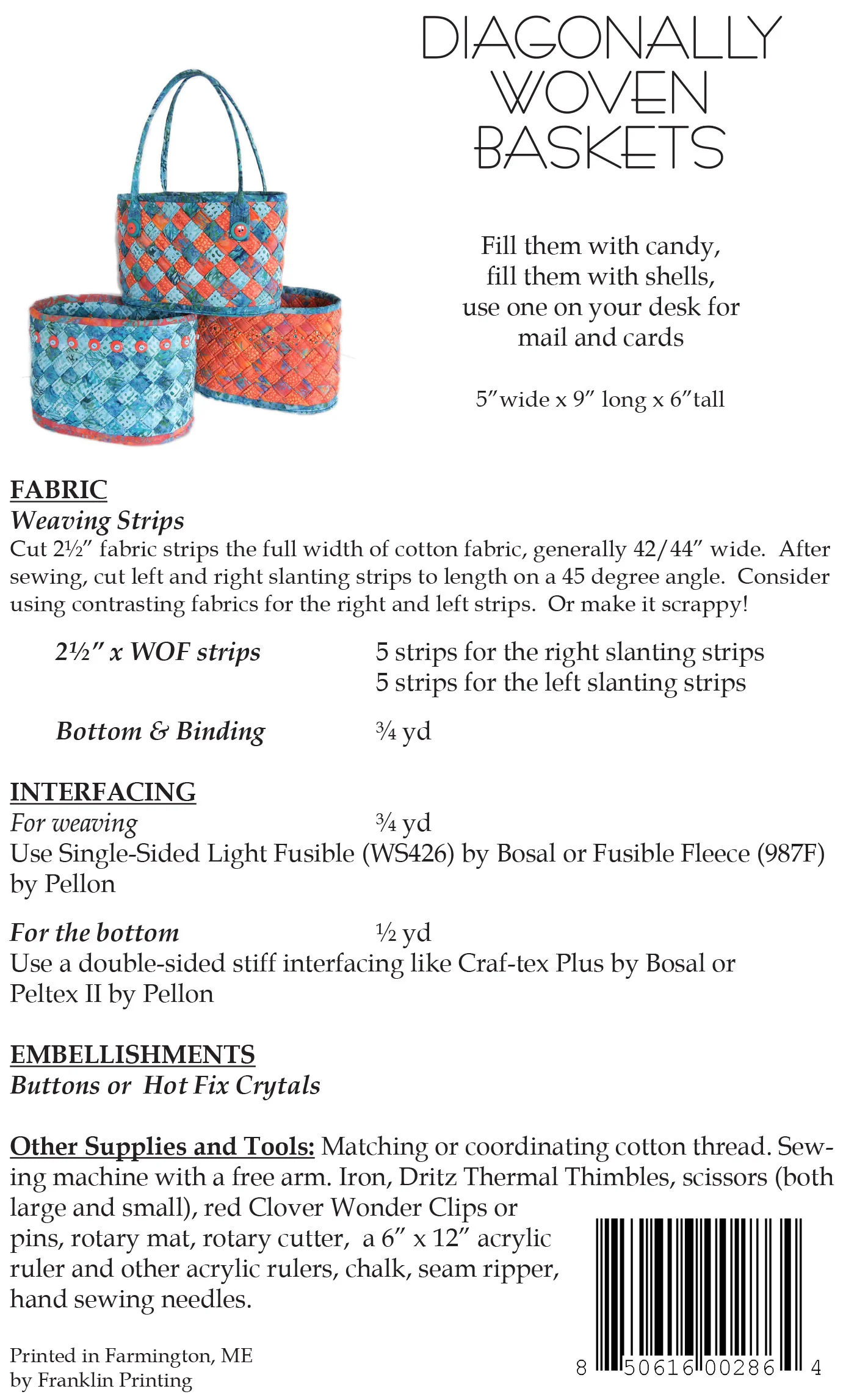 Diagonally Woven Baskets Bag Pattern AT 286 by Aunties Two