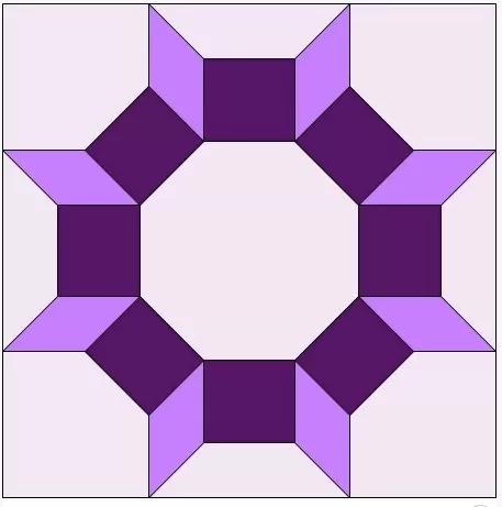 This pretty block is a re-make of a 1930’s pattern, with petals stitched to an octagon and squared up with triangles and squares.