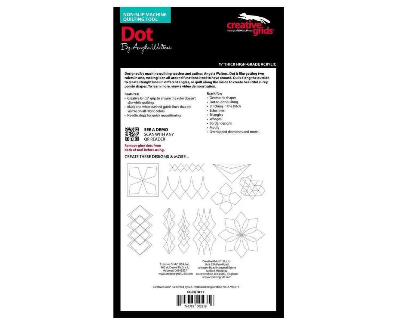 Dot Creative Grids Non-Slip Free Motion Quilting Tool / Ruler SEE VIDEO