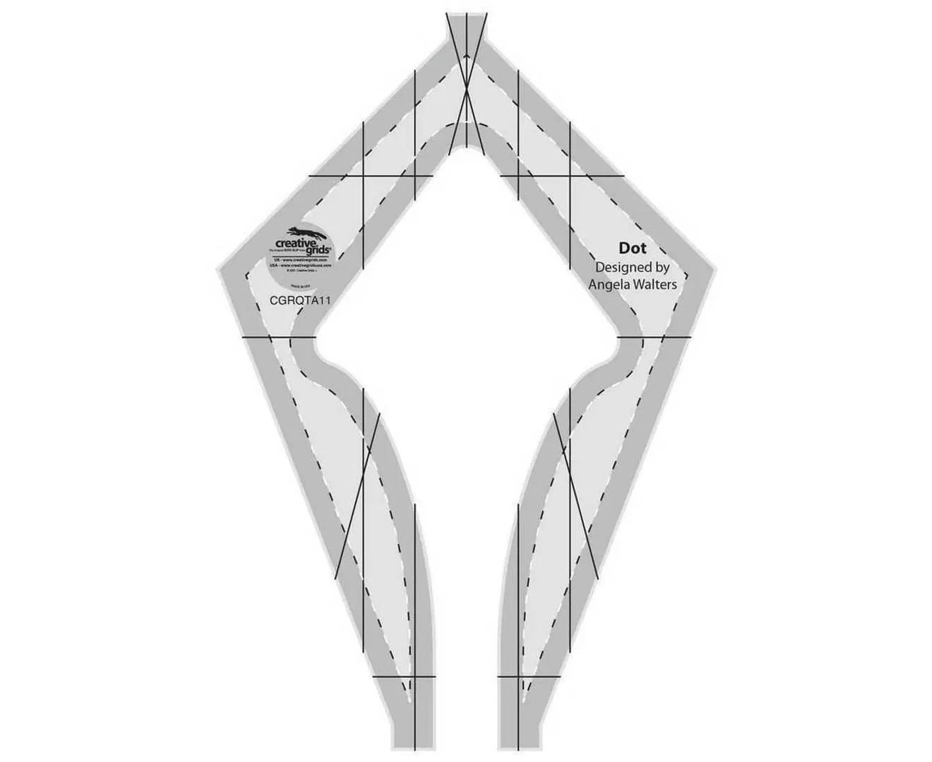 Designed by machine quilting teacher and author, Angela Walters, Dot is like getting two rulers in one, making it an all-around functional tool to have around. Quilt along the outside to create straight line in different angles, or quilt along the inside to create beautiful curvy, pointy shapes. To learn more, view a video demonstration.