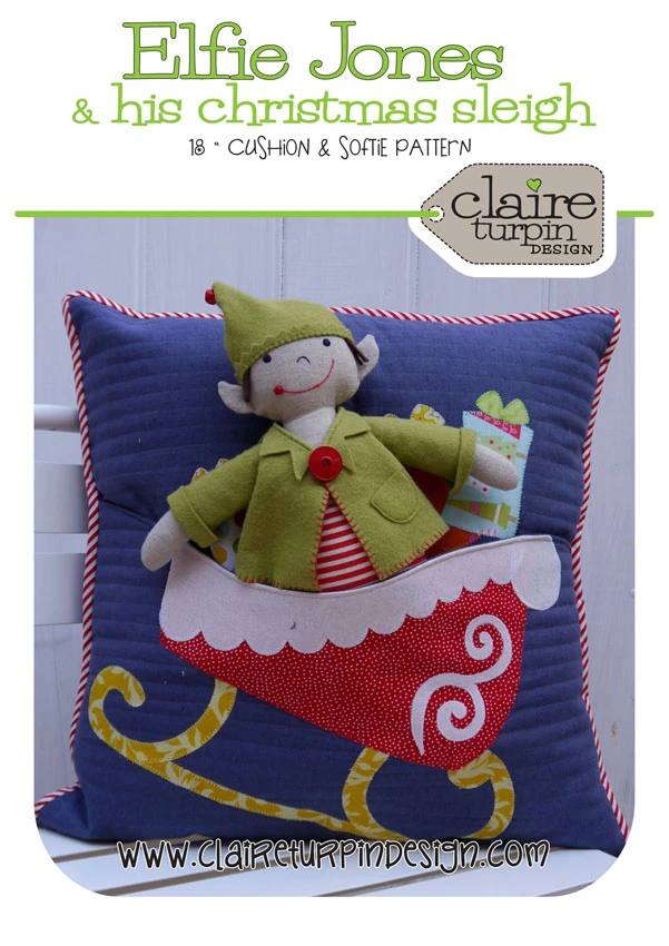 Elfie Jones and his Christmas Sleigh Applique Cushion Pattern by Claire Turpin