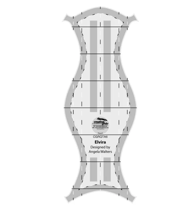 She not only looks beautiful, she’s quite handy when quilting wavy lines or continuous curve lines. Elvira can quilt multiple arcs in multiple directions without rotating your quilt (or working from the back of your foot)!