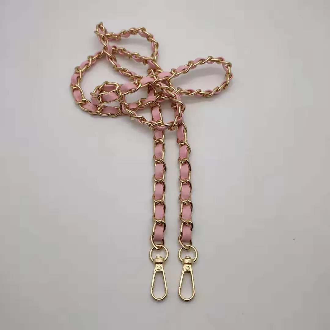 Gold Chain Leather Insert 110cm Pink
