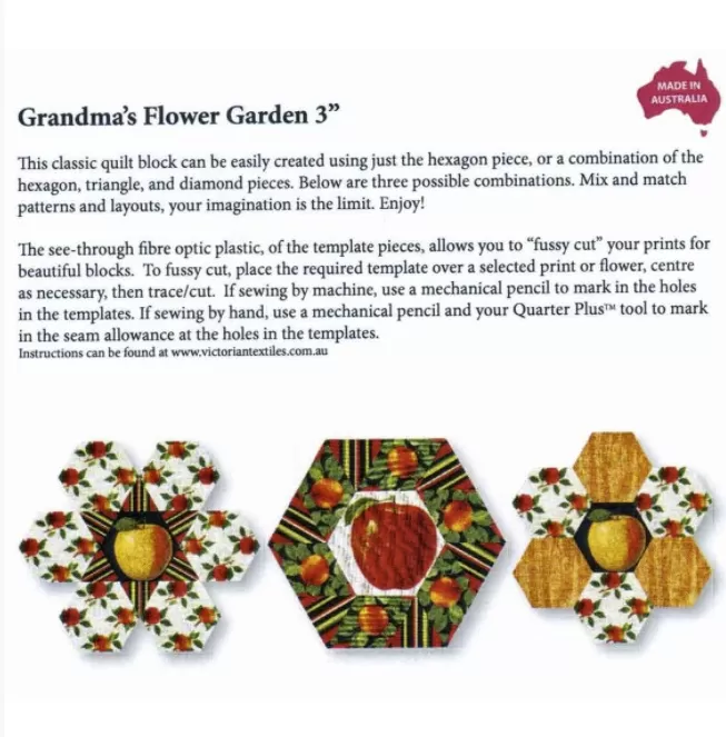 Grandma's Flower Garden Hexagon 3 Inch Patchwork Template Matilda's Own