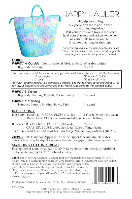 Happy Hauler Bag Pattern AT640 by Aunties Two