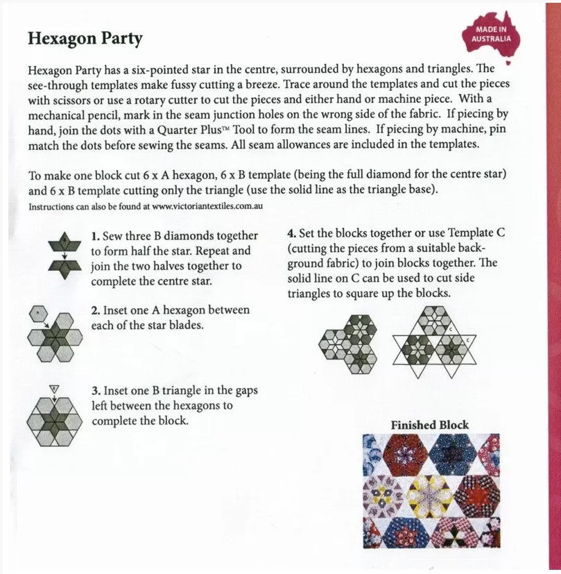 Hexagon Party Patchwork Template Meredithe Clarke Signature Collection