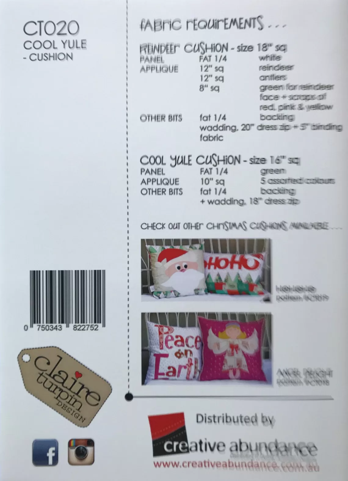HoHoHo Applique Cushion Pattern by Claire Turpin 2 Designs Included
