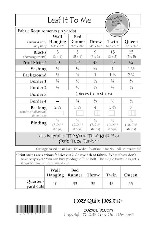 Save! Purchase your Strip Tube Ruler™ / s with your Cozy Quilt Design pattern. A $2 discount on each ruler automatically given at checkout
