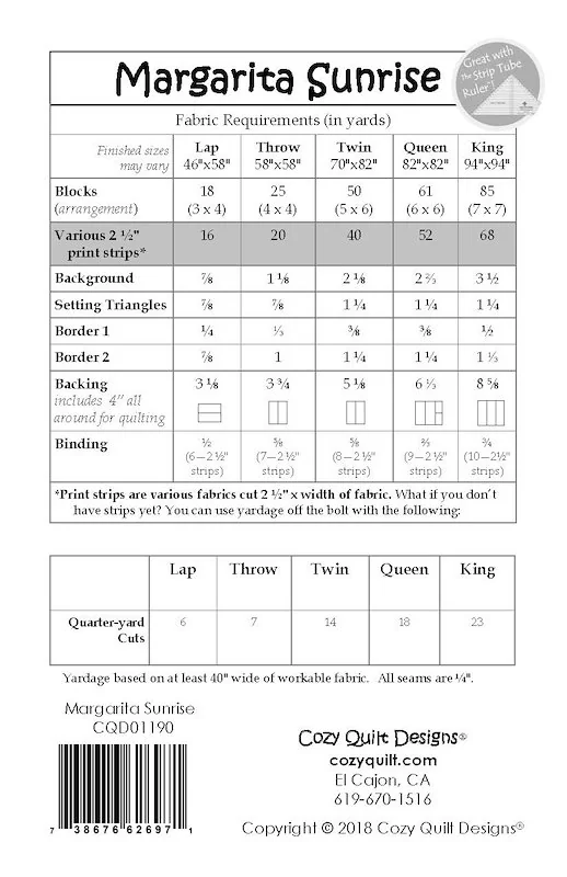 Margarita Sunrise Pattern by Cozy Quilt Designs