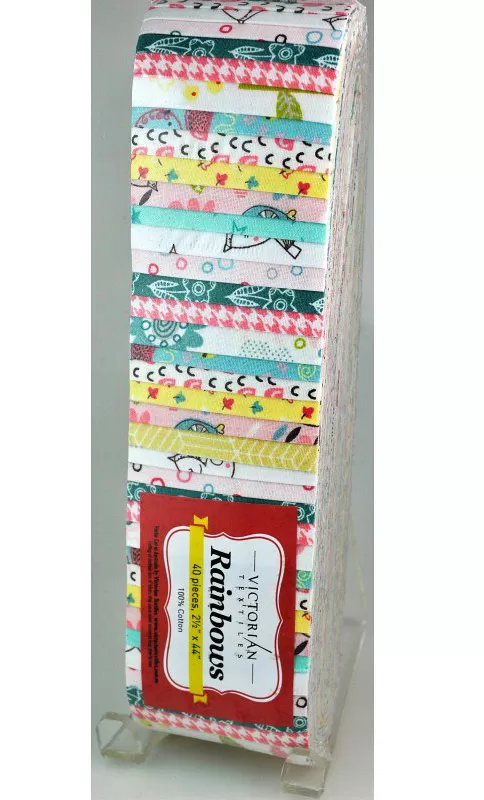 A Rainbow is a 2 1/2" Precut Fabric Strip set, 40 strips of 100% cotton Fabric