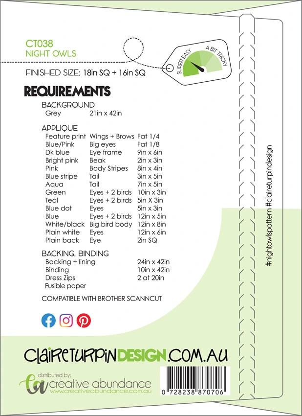 Night Owls Applique Cushion Pattern by Claire Turpin