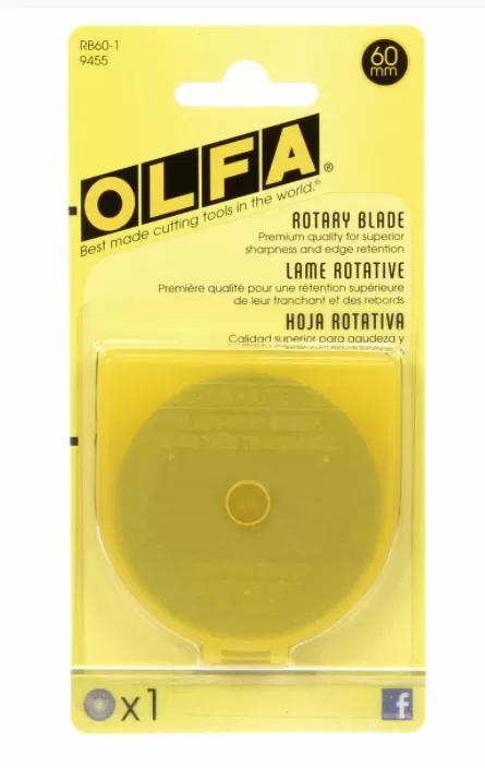 • Circular rotary replacement blade for our 60mm rotary cutter used for quilting, sewing, scrapbooking, and general crafts.
