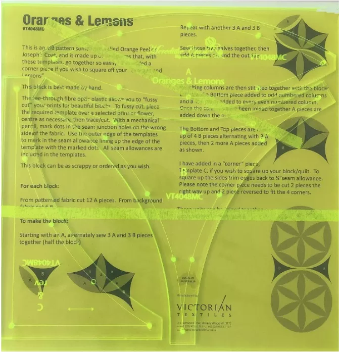 Orange and Lemons Patchwork Template Meredithe Clark Signature Collection