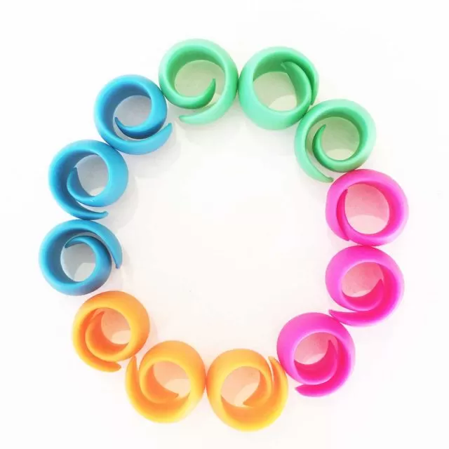 Each Pack of Peel Spool Huggers contains 12 Pieces, 3 each of orange, green, blue and pink