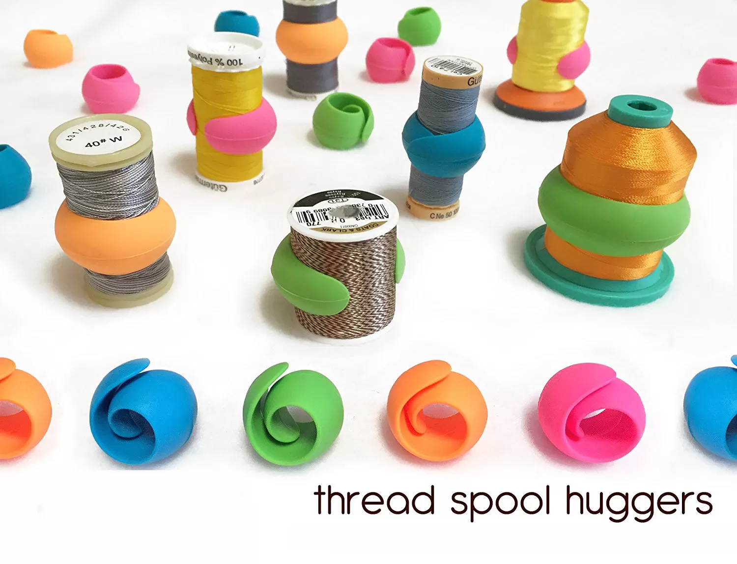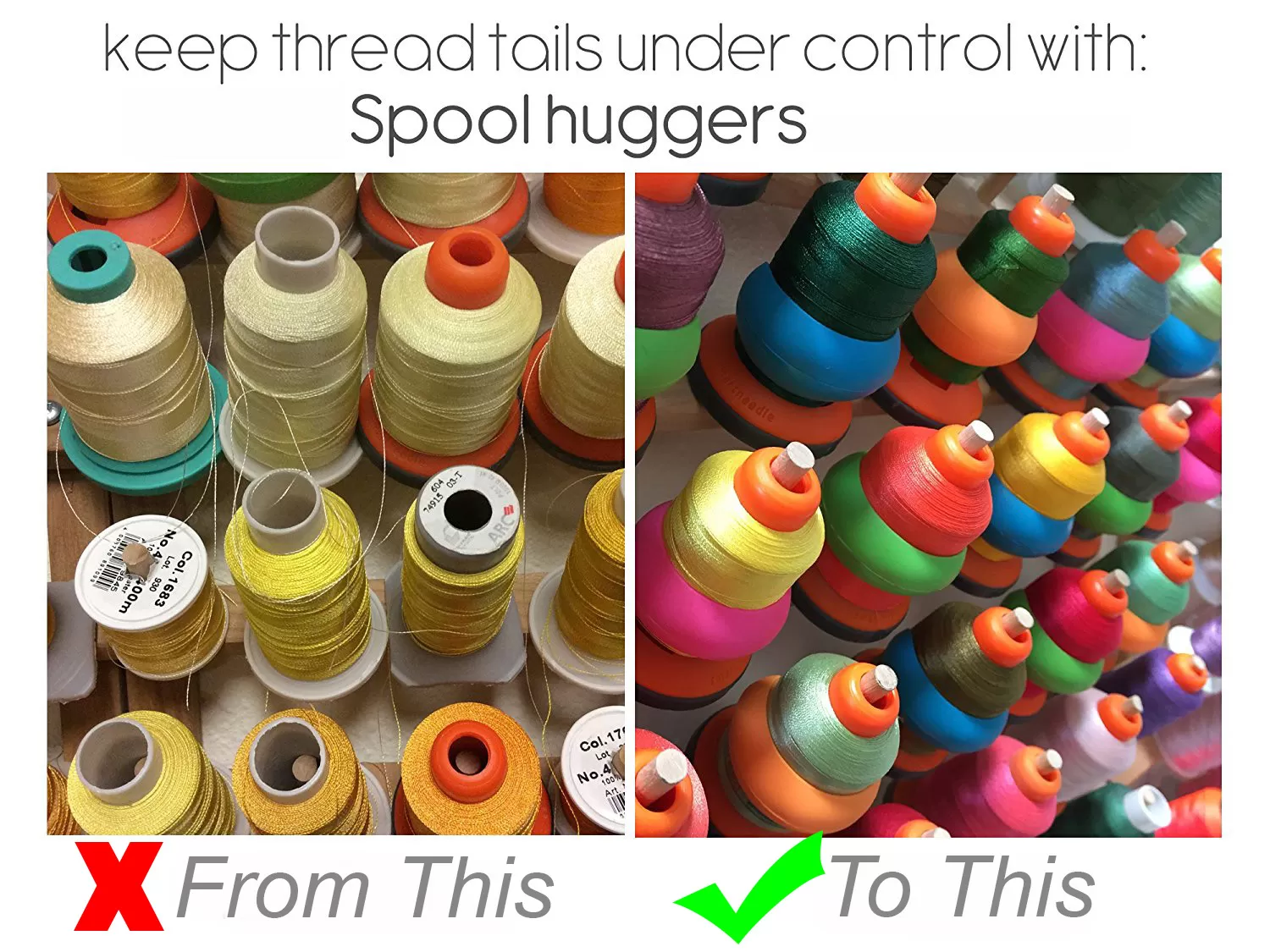 - ☆ EXPANDABLE TO FIT MOST THREAD SPOOLS. Peel Spool Huggers are thread organizers can fit most home sewing and embroidery thread spools, except large commercial or jumbo spools to prevent unraveling and keep your threads nice and tight. Spool Huggers are a lifesaver for anyone who loves to sew.