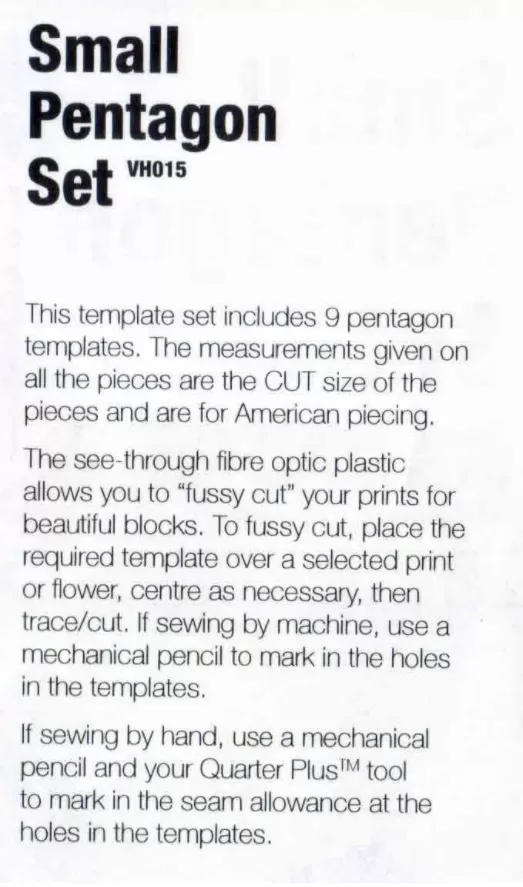Pentagon Small Set Patchwork Templates Matilda's Own