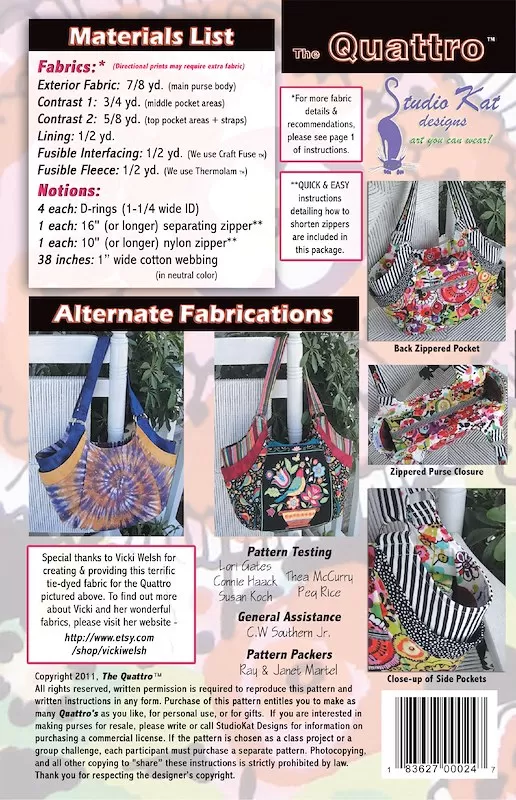 Quattro Bag Pattern by Studio Kat Designs