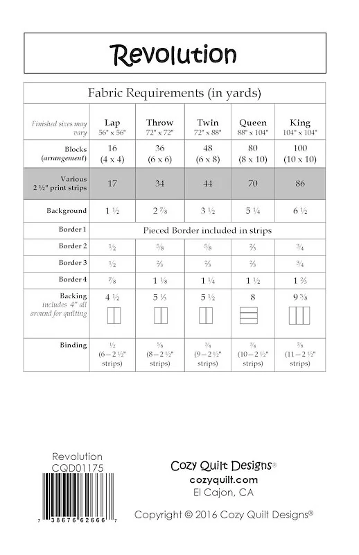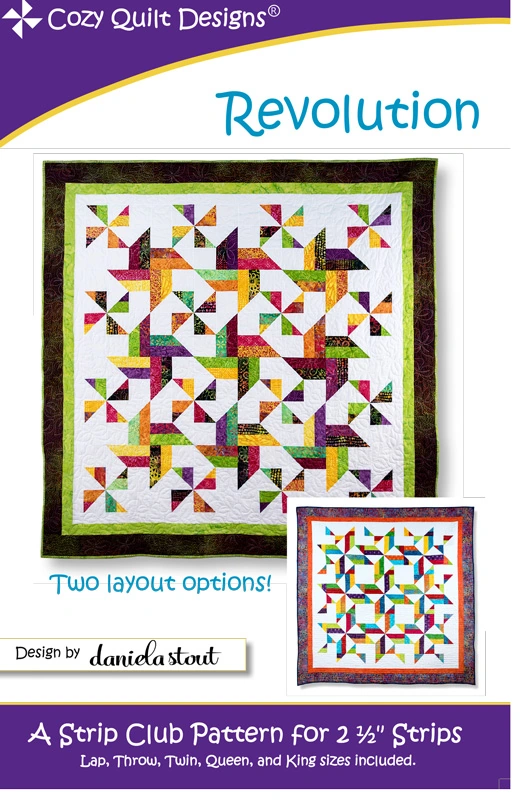 Revolution! In classic Cozy style, this simple pattern uses 2.5in Strips to create a dynamic quilt! With two layout options available, you'll want to make your own Revolution - twice!