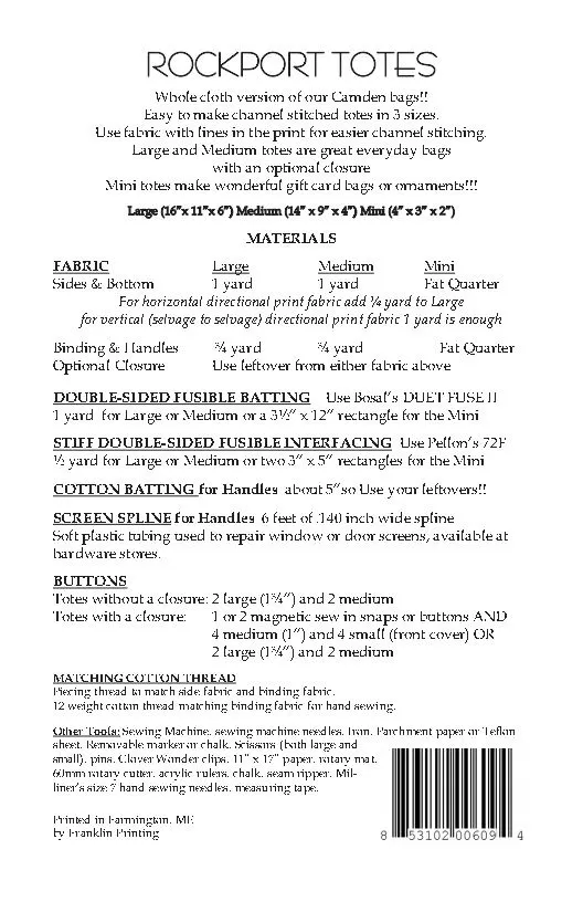Rockport Totes bag Pattern AT609 by Aunties Two