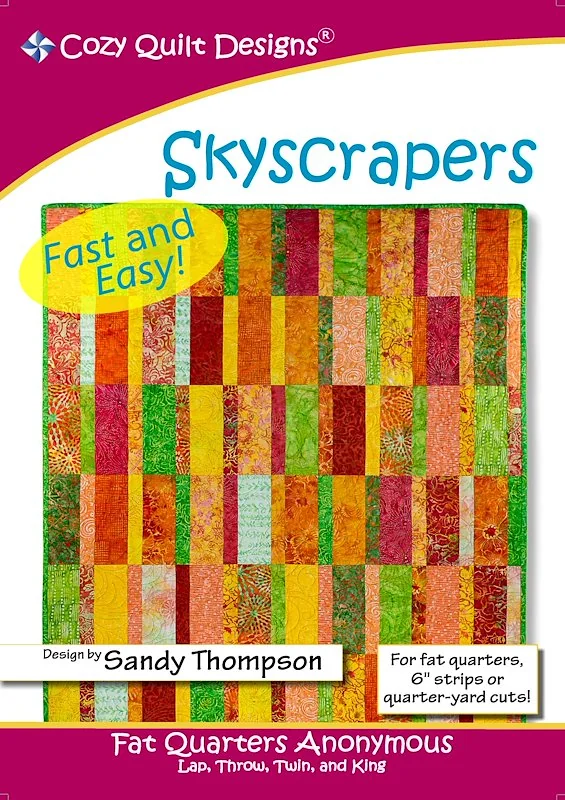 Skyscrapers is a pattern perfect for Fat Quarters, 6in strips, or quarter-yard cuts! It's fast, simple, and gives you room to play with colors and fabrics of your own!