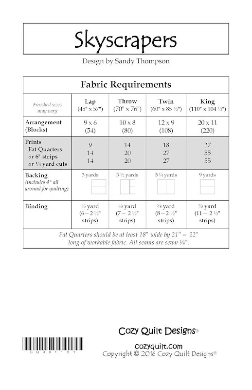 Skyscrapers Pattern by Cozy Quilt Designs