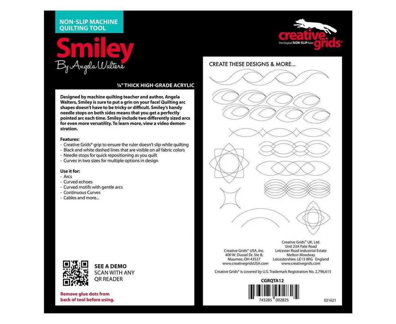 Smiley Creative Grids Non-Slip Free Motion Quilting Tool / Ruler SEE VIDEO