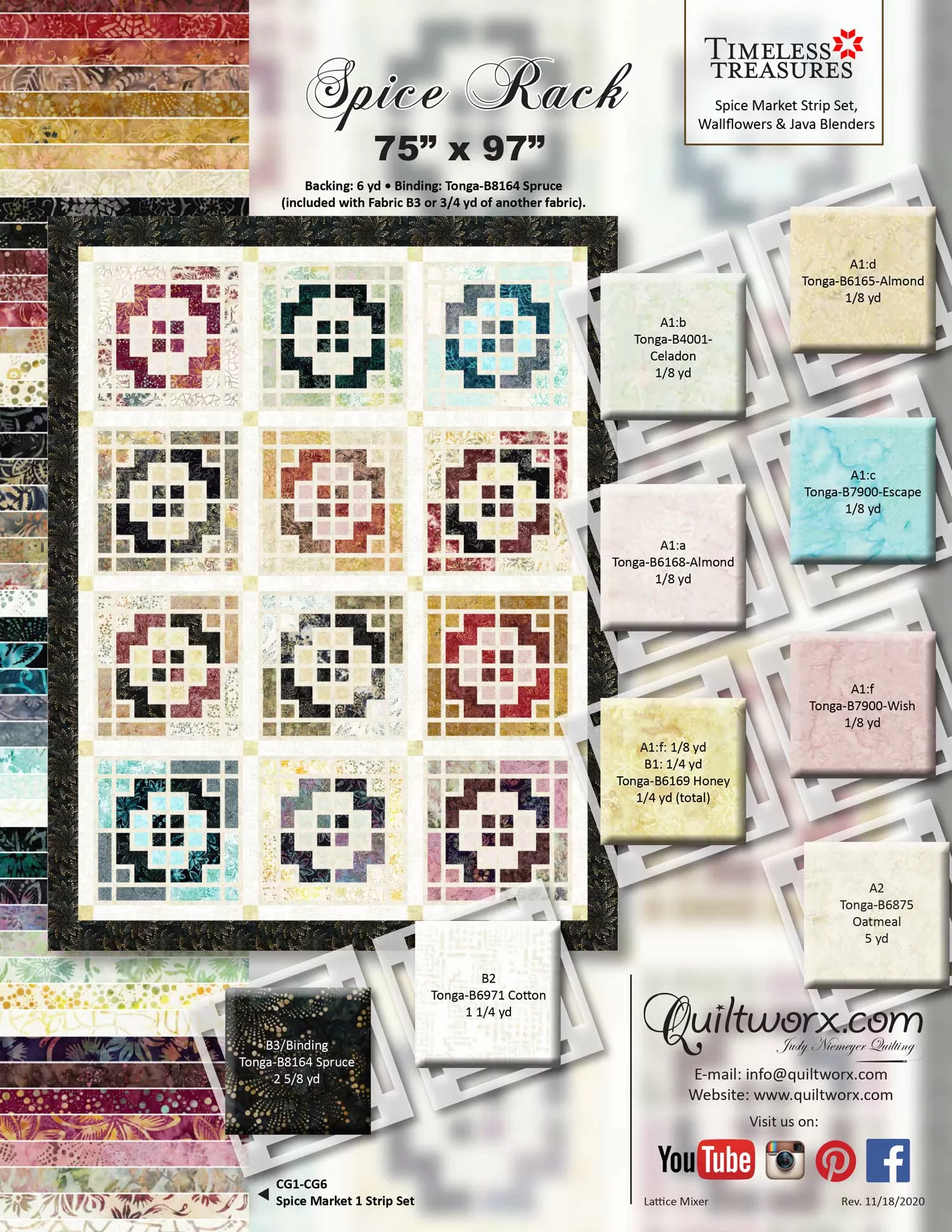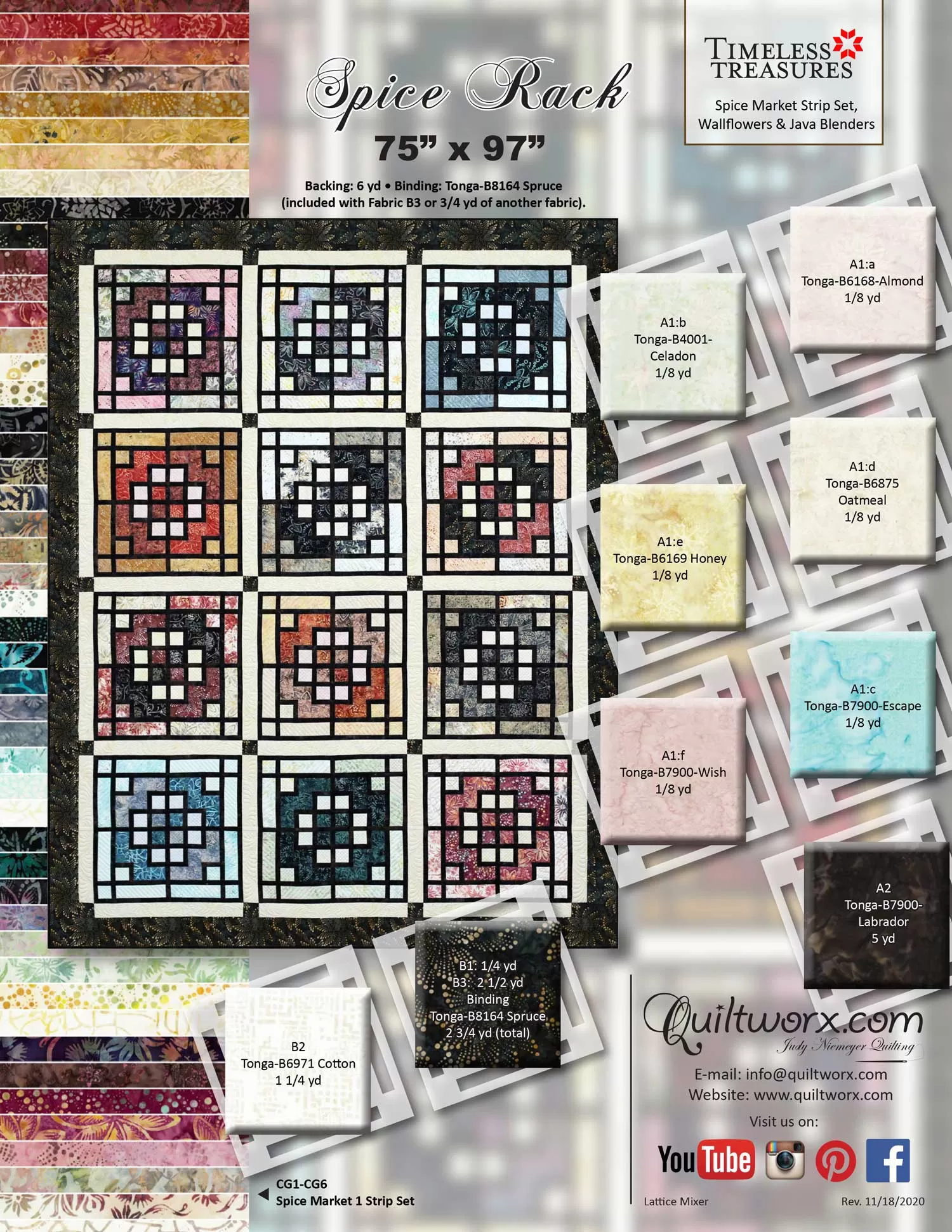 The foundation papers for the Spice Rack were designed by Quiltworx. The instructions included herein describe the process of making one quilt. Additional papers are available for purchase to increase the size of the pattern or make another quilt.