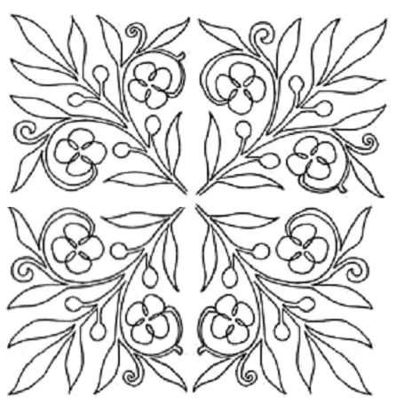 A natural for those nature themed quilts - you can place it in a block singly, an 8" block would be great or you can put four repeats together in a larger 16" block. All one continuous line.