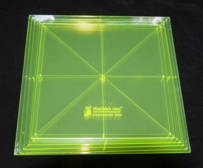 Matildas Own are an Australian company and their templates are laser etched for 100% accuracy. These digitally etched markings are the most precise and accurate markings you can find and will not fade over time or wear off. This imperial fiber optic template can be easily used on all kinds of fabric, be it light or dark, due to its easy to read fluro green colour giving you a high degree of accuracy. Being so translucent makes it perfect for fussy cutting prints for making your beautiful blocks.