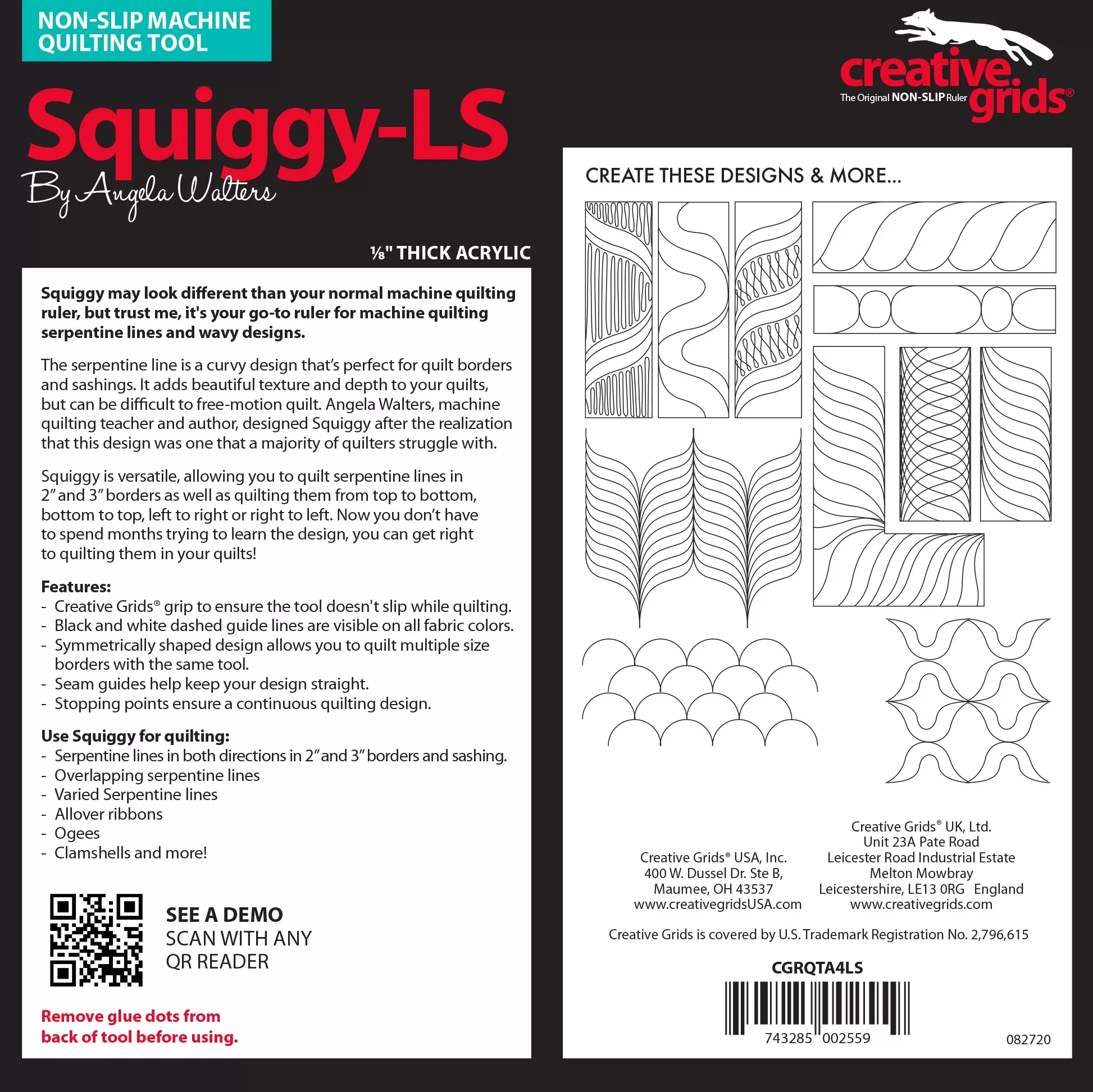 Designed by machine quilting author and teacher, Angela Walters, Squiggy is the go-to tool for machine quilting serpentine lines and wavy designs.