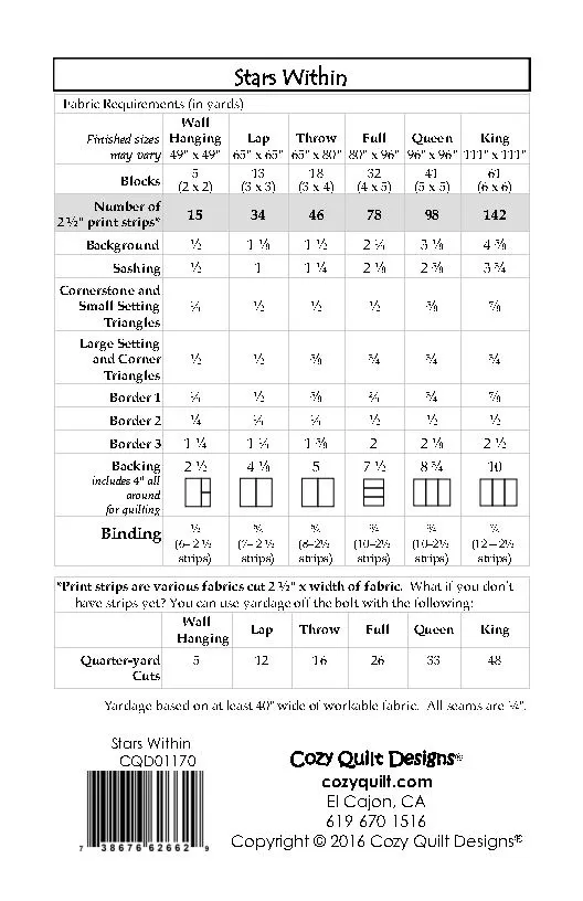 Stars Within Pattern by Cozy Quilt Designs - See Video