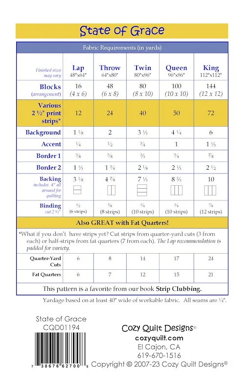 State Of Grace Pattern by Cozy Quilt Designs