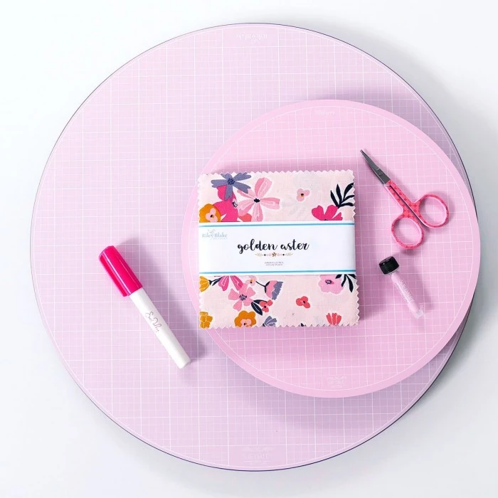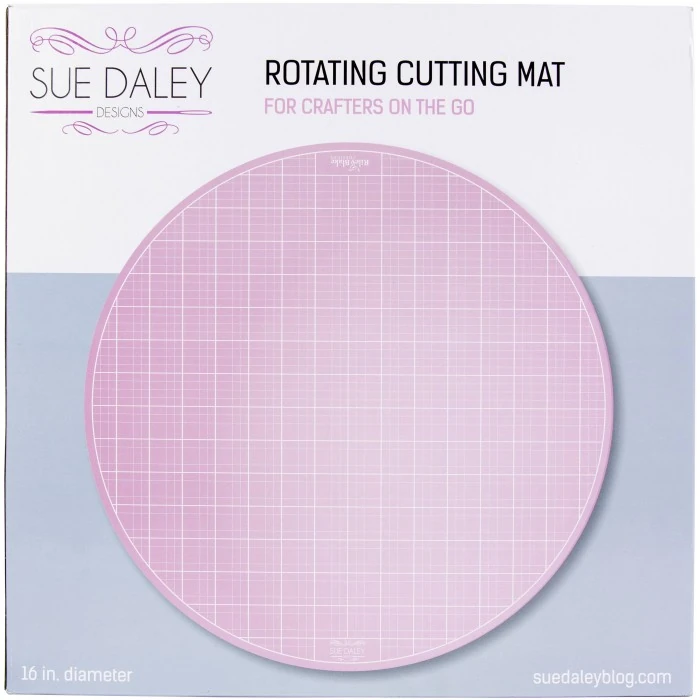 The 16" (40.6cm) Sue Daley PINK Self Healing rotating cutting mat. A must have accessory