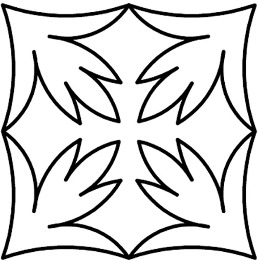 From the collection of Sweet Wheat patterns this one fits a 7 to 8 inch block well. If you look at it carefully, you'll see two things. Either four patterns in the corners pointing inward or a cross in the center of a square.