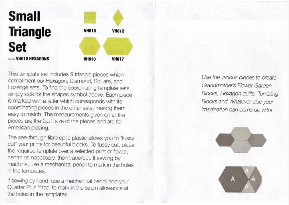 Triangle Small 60 Degree Patchwork Template Set Matilda's Own