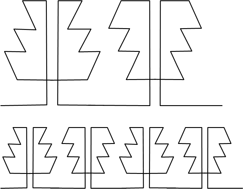 A classic southwest design by Dave Hudson. This is a fairly simple pattern makes a great border as well as an overall pattern when repeated in rows. Registration points make repeating it effortless. If you want to go all out - use some threads to color in the closed parts of the design. Use it to make something really special and unique. Be sure to see all our other southwest patterns! Designs measure 2 3/4" and 1 3/4" widths.